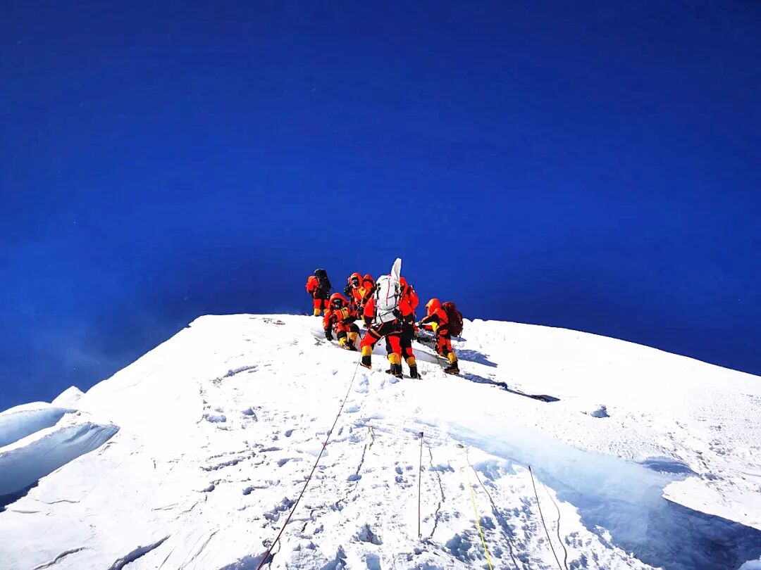 5月27日11:00,中国2020珠峰高程测量登山队8名队员成功登顶世界第一高峰珠穆朗玛峰!世界最高峰峰顶上,鲜艳的五星红旗迎风招展。