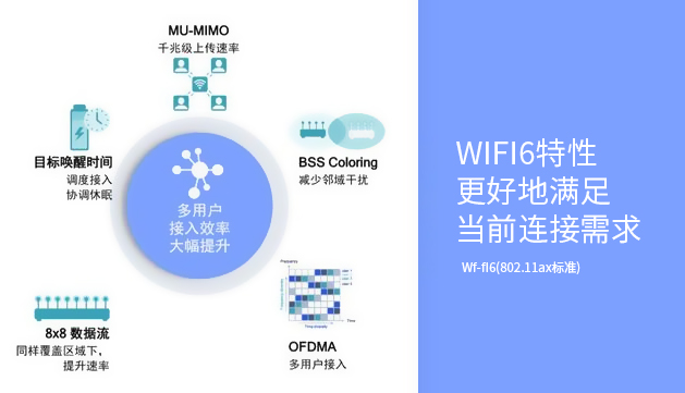Wi-Fi 6(原称:802.11.ax),是Wi-Fi标准的名称。Wi-Fi 6将允许与多达8个设备通信,最高速率可达9.6Gbps。